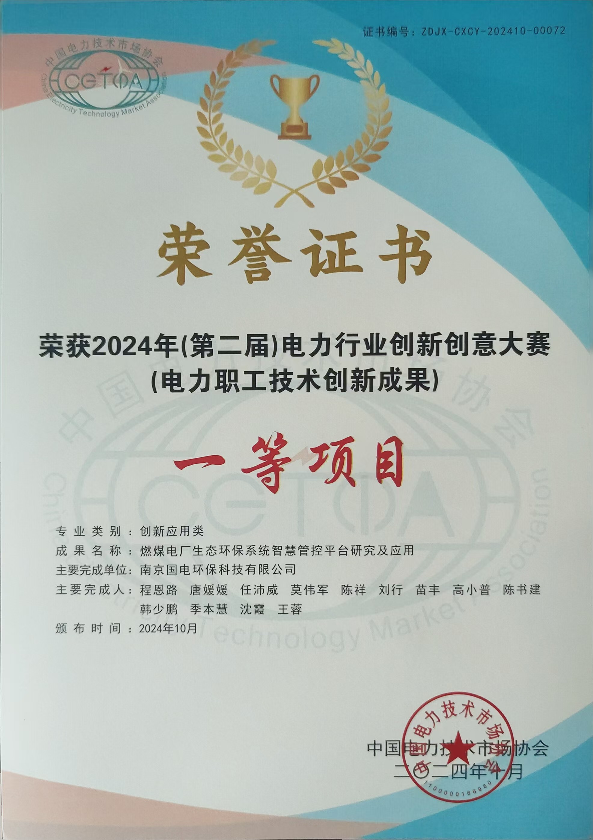 公司“燃煤電廠(chǎng)智慧環(huán)保島平臺(tái)”項(xiàng)目獲全國(guó)電力行業(yè)創(chuàng)新創(chuàng)意大賽一等獎(jiǎng)