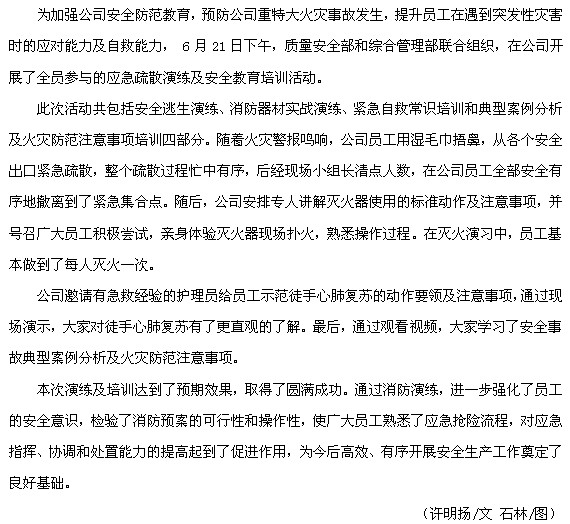 公司開展消防應(yīng)急疏散演練及安全教育培訓(xùn)活動