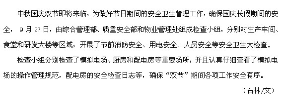 公司開展節(jié)前安全衛(wèi)生大檢查