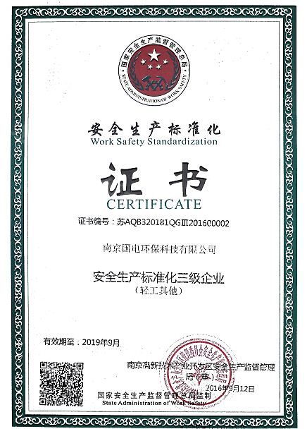 近日,公司順利獲得國家安全生產(chǎn)監(jiān)督管理總局頒發(fā)的“安全生產(chǎn)標(biāo)準(zhǔn)化三級企業(yè)證書(輕工其他)”。