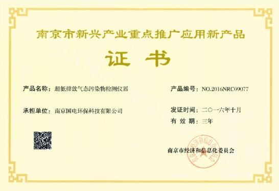 公司產(chǎn)品榮獲南京市新興產(chǎn)業(yè)重點推廣應(yīng)用新產(chǎn)品證書