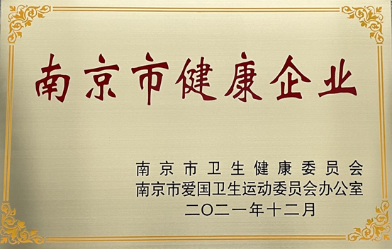 ???? 近日,南京市衛(wèi)生健康委員會和南京市愛國衛(wèi)生運動委員會辦公室聯(lián)合發(fā)布《關(guān)于公布2021年度南京市“健康企業(yè)”建設(shè)評估結(jié)果通知》(寧衛(wèi)職健〔2021〕2號),公司被授予“南京市健康企業(yè)”稱號。