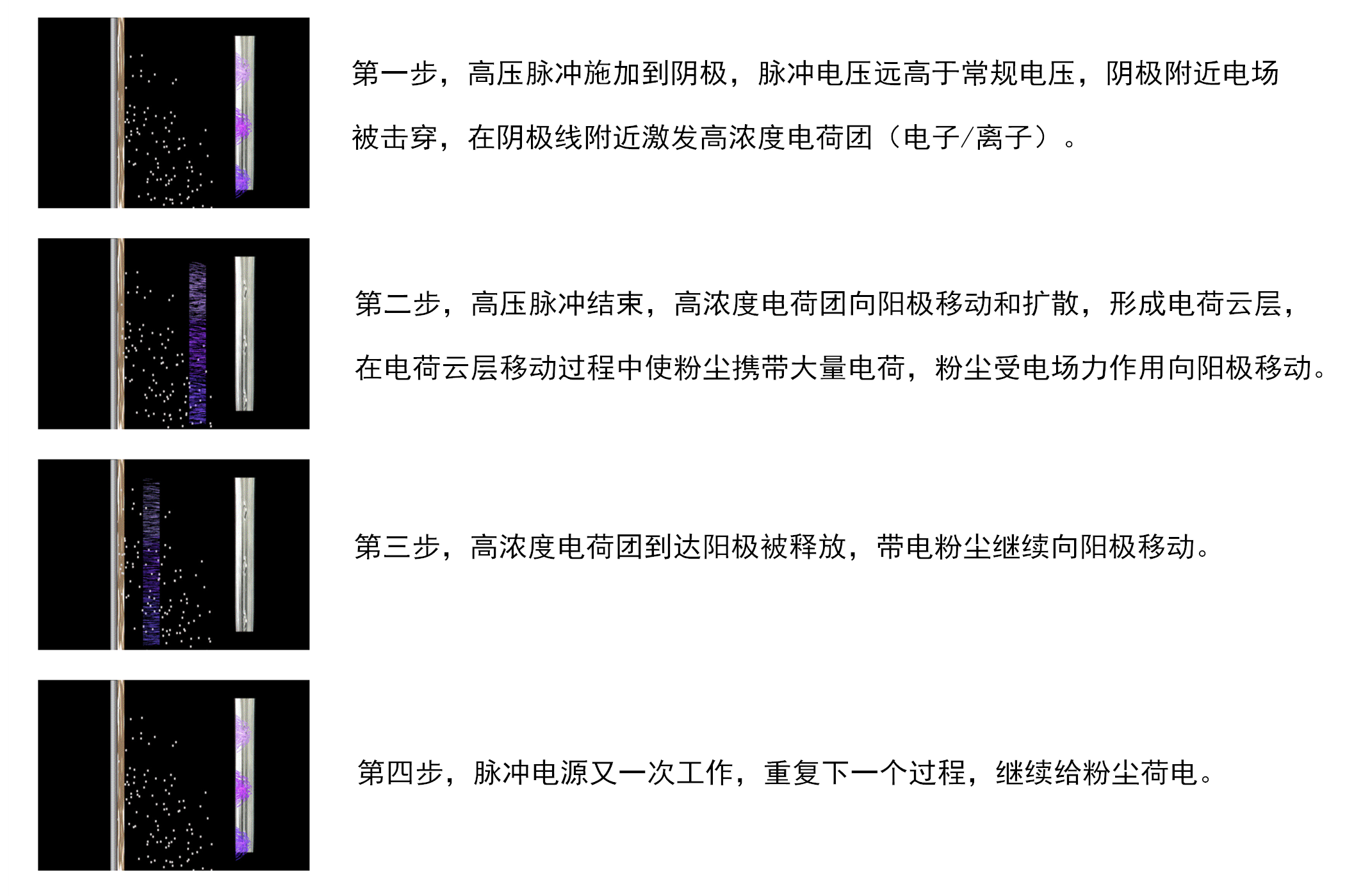 脈沖電源激發(fā)的電荷濃度為常規(guī)直流電源的幾百倍,極大提高了粉塵的荷電量,保證了PM2.5微細粉塵充分荷電,從而大幅提高除塵效率,工程應(yīng)用表明可減少粉塵排放50%以上。