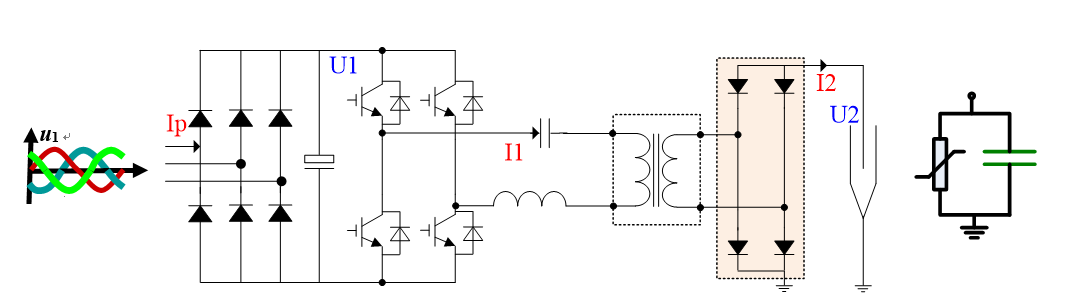 HF系列電除塵器高頻電源采用串聯(lián)諧振電路設(shè)計,把三相交流電整流為直流電,通過逆變電路形成高頻交流電,再經(jīng)高頻整流變壓器升壓整流后,輸出高頻脈動電流至電除塵器,其工作頻率一般在20kHz~50kHz 。