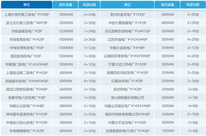 HF系列高頻電源已經(jīng)擁有6000余套設(shè)備全國500余臺機(jī)組的運(yùn)行業(yè)績,其中1000MW級機(jī)組有30余臺,600MW級機(jī)組100余臺,300MW級機(jī)組200余臺,濕式除塵器配套100余臺,運(yùn)行穩(wěn)定可靠,減排與節(jié)能效果顯著。