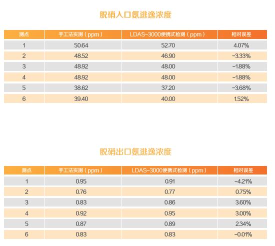 為驗證該產(chǎn)品對氨逃逸濃度測量的準(zhǔn)確性,在某1000MW燃煤機組進行了手工法測量與儀器測量的對比試驗。