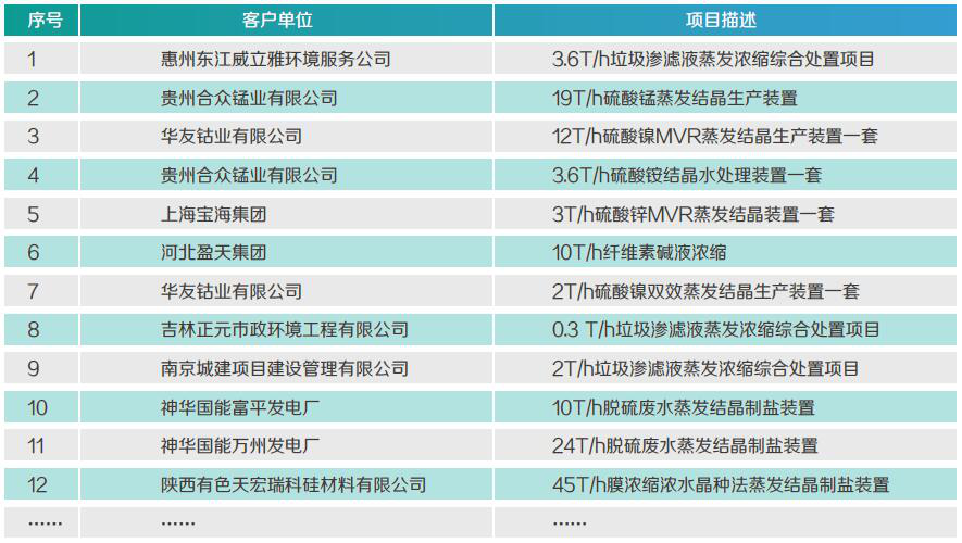 對(duì)于蒸發(fā)水量較小的場合,系統(tǒng)單位造價(jià)較高,且由于運(yùn)行維護(hù)投入不夠,很難正常穩(wěn)定運(yùn)行。針對(duì)存在的上述問題,公司開發(fā)了EVA-CV系列一體化蒸發(fā)結(jié)晶裝置,降低單位造價(jià),免除大量的現(xiàn)場安裝工作,裝置自動(dòng)化程度高,運(yùn)行安全可靠,已在脫硫廢水、垃圾滲濾液等廢水處理及提純回收硫酸銨、氯化鈉、硫酸鈉、硫酸鎂、氯化鉀、硫酸鎳等產(chǎn)品的蒸發(fā)結(jié)晶生產(chǎn)中得到成熟應(yīng)用。