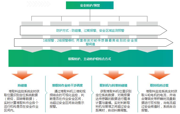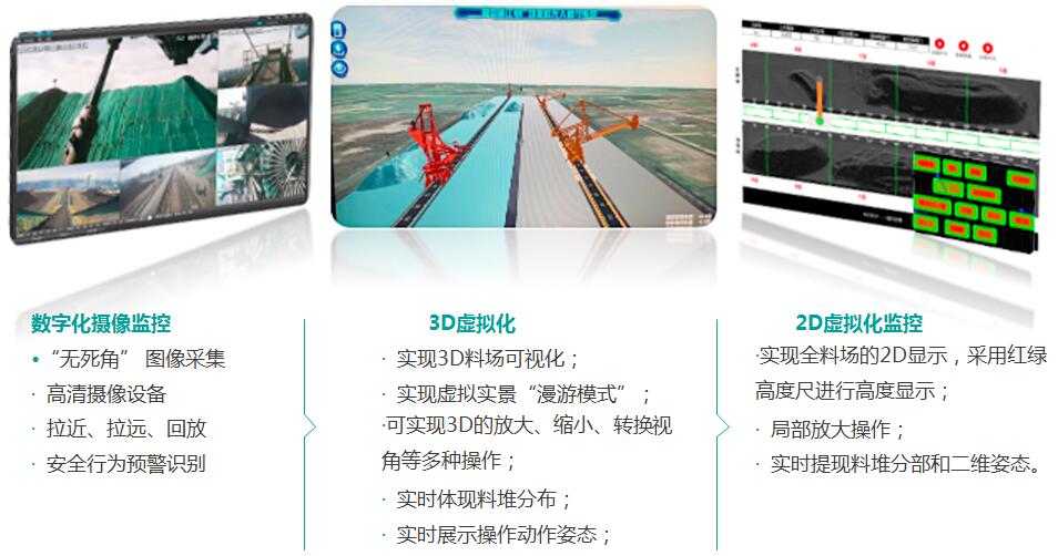 包括編碼器以及冗余的位置測量,精準定位堆取料姿態(tài),安裝激光、雷達、紅外對射等物聯網感知,集成數字化攝像等信息