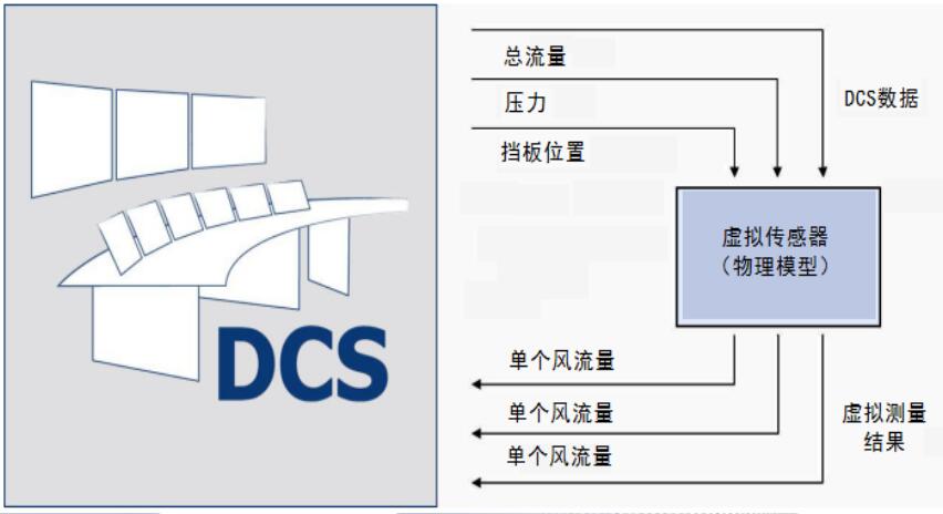 “風量虛擬測量系統(tǒng)”中的虛擬傳感器并不以實物存在,而是轉(zhuǎn)換成軟件的傳感器。這些傳感器從其它可用的數(shù)據(jù)源如DCS中計算出測量讀數(shù)。一個基本的物理電廠模型強化因果關(guān)系。