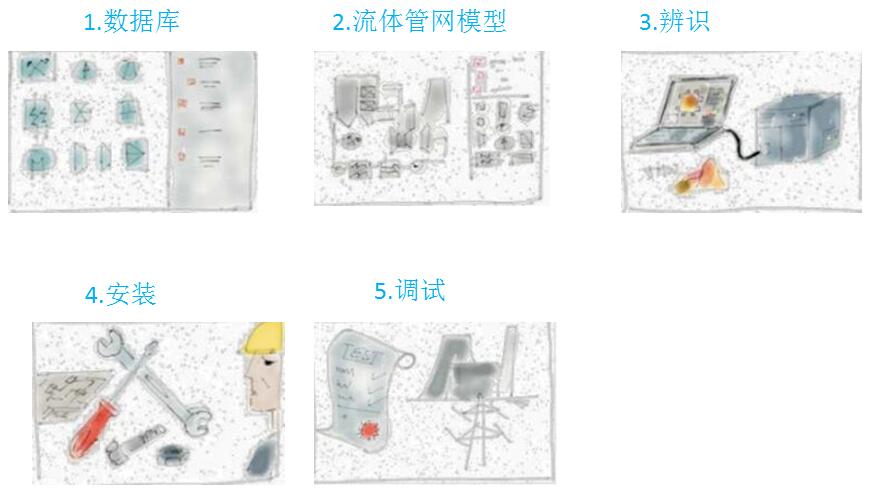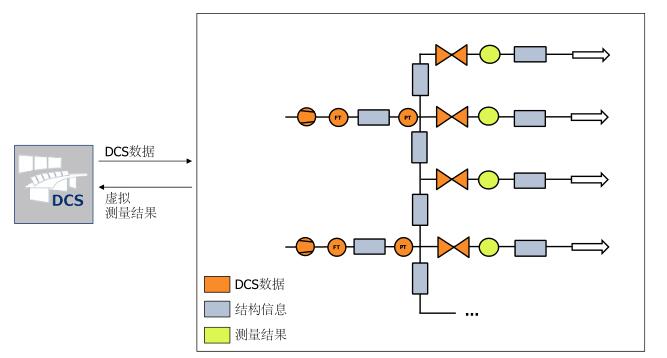 流體管網(wǎng)模型的構(gòu)建是來源于根據(jù)工藝管道及儀表流程圖中的所有系統(tǒng)部件數(shù)據(jù)庫。采用電廠的歷史數(shù)據(jù)對模型進行辨識和檢驗。接下來,把虛擬傳感器集成到DCS的結(jié)構(gòu)中,然后進行系統(tǒng)調(diào)試并檢驗結(jié)果。