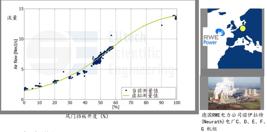 “風量虛擬測量”已成功應(yīng)用在很多個燃煤火力發(fā)電廠。這些虛擬傳感器有助于發(fā)現(xiàn)并糾正調(diào)錯的風量。能替換有缺陷的風量測量裝置。與手工測量(如皮托管)結(jié)果相比,具有非常接近的效果。