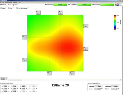 火焰溫度2維軟件能夠獲取所有傳感器的信息。通過對(duì)任意傳感器組合,能夠計(jì)算相應(yīng)的2維溫度場(chǎng)分布狀況。軟件應(yīng)用是在Windows環(huán)境。