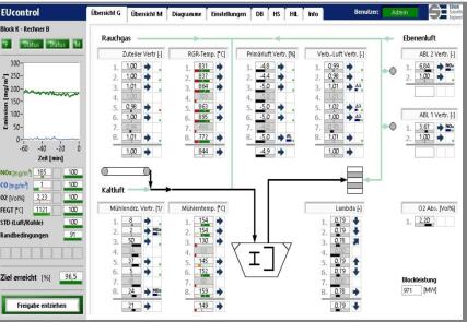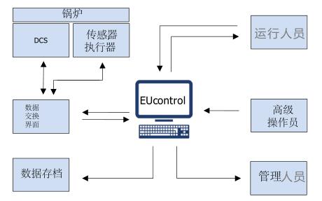 EUcontrol為模塊式結(jié)構(gòu),能夠與其它無關(guān)聯(lián)的數(shù)據(jù)源進(jìn)行無縫對接。在一定的限制條件下(多個優(yōu)化策略)能同時兼顧不同的優(yōu)化目標(biāo)。EUcontrol從不同的地點收集燃燒過程信息。所有信息集中在一個鍋爐物理模型上以后,EUcontrol通過連續(xù)在線的參數(shù)識別和調(diào)整,自動適應(yīng)不斷變化的電廠工況。依靠這個物理模型,確定這些可控的參數(shù)如擋板開度、給煤機轉(zhuǎn)速、燃盡風(fēng)量、氧量的最佳設(shè)定值,然后送至電廠的DCS/PLC系統(tǒng)中。EUcontrol可以根據(jù)任何燃煤鍋爐設(shè)備的特殊需求進(jìn)行“量身定做”。